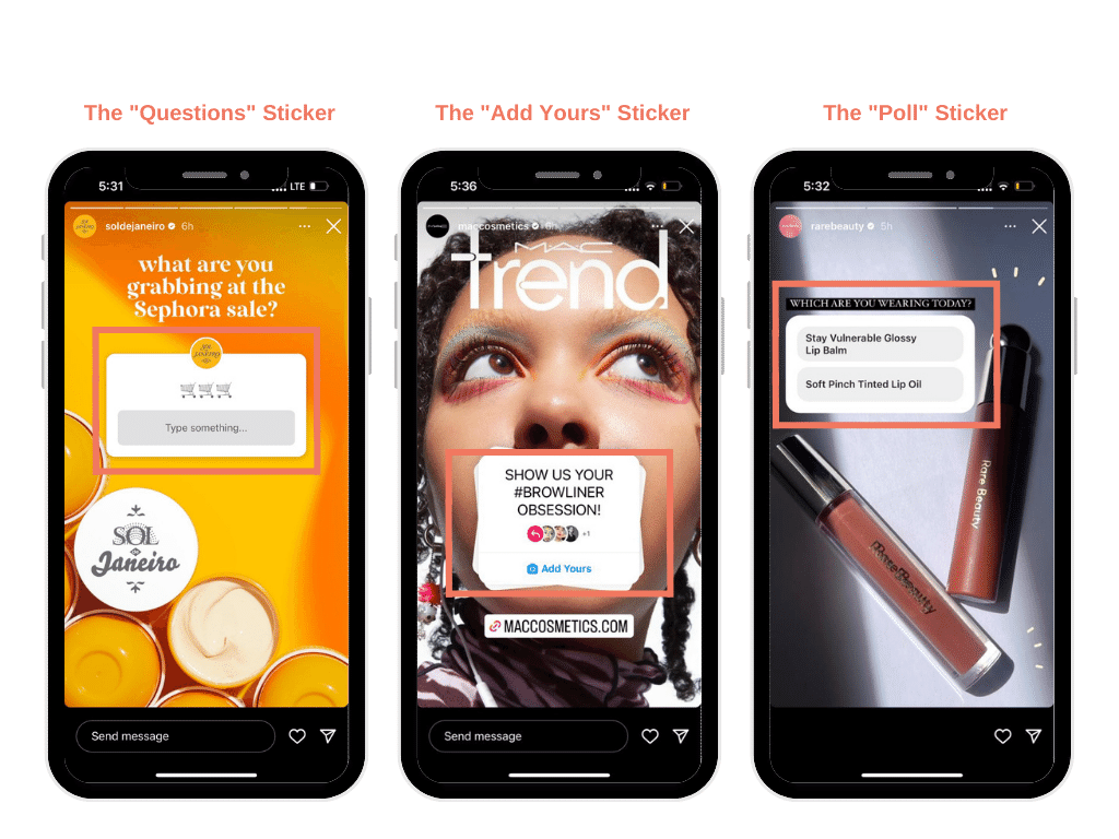 In addition, when posing questions through Instagram Stories, make the most of the stickers (Polls, Quizzes, Questions, Ratings, Add Yours).