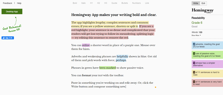 Improve your writing and its readability with this online tool. It not only highlights lengthy, complex sentences and errors but also makes suggestions for improvement.